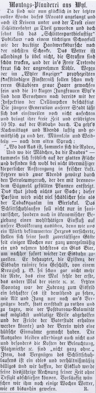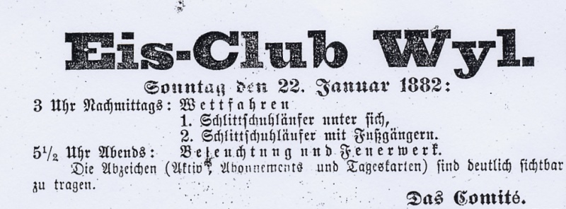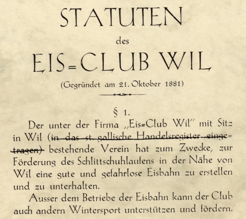 Obwohl das Gründungsprotokoll fehlt, wird aufgrund der Statuten die Gründung des Eisclubs Wil auf den 21. Oktober 1881 festgeschrieben. Als geeigneter Standort für eine Eisfläche wurde der grosse Weiher bei der Oberen Mühle ausgewählt. Im Jahr 1910 musste aus finanziellen Gründen auf den Weiher in Dreibrunnen ausgewichen werden. Es handelt sich aber "nur" um den Club für das Eislaufen, Eishockey ist noch kein Thema.