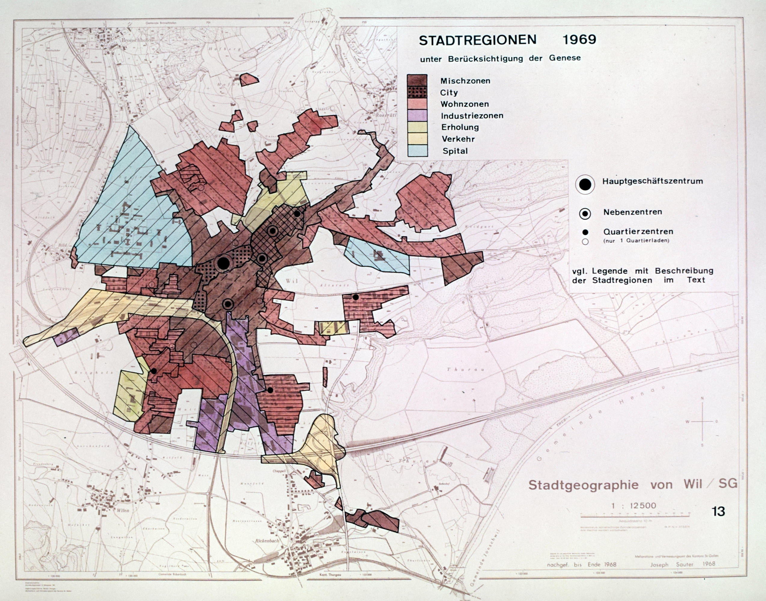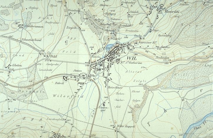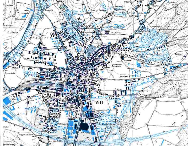 Die bauliche Entwicklung Die wirtschaftliche und bauliche Entwicklung Wils wurde durch die Strassenkorrektion von 1834/35 eingeleitet. Der spätere Erbauer des Suezkanals, Ingenieur Alois Negrelli aus Südtirol, regte damals an (er war Kantonaler Strassen- und Wasserbauinspektor), die bestehenden Gefälle von bis zu 15 Prozent auf maximal 9 Prozent zu korrigieren, die Strassen zu verbreitern, alle Tore (bis auf das Hoftor) und den grössten Teil der Stadtmauern zu beseitigen, damit der Verkehr besseren Zugang zur Stadt finden konnte. Die Wiler stimmten seinen Vorschlägen zu, die Stadt öffnete sich. Erst zögernd im Gebiet um die älteste Wiler Kirche St. Peter, später vor allem an der durch die Korrektion entstandenen Oberen Bahnhofstrasse, begann sich die Stadt zu entwickeln. Die Eröffnung der Bahnlinie Winterthur - Wil im Jahr 1855 verstärkte die Bautätigkeit ausserhalb der Altstadt. Die Toggenburgerbahn Wil - Ebnat wurde 1870, die Schmalspurbahn nach Frauenfeld 1887 und der Schienenweg nach Konstanz 1911 in Betrieb gesetzt. 1875 wurde das hölzerne Wasserleitungsnetz durch eiserne Rohre ersetzt, ab 1912 die erste umfassende Kanalisation gebaut. Grosse Veränderungen im Stadtbild brachten Um- und Neubauten ab 1960, die vor allem die Obere Bahnhofstrasse grundsätzlich umgestalteten. Über 70 Prozent der heutigen Bausubstanz Wils sind nach 1960 erst erstellt worden. Die Quartiere am Hofberg und in Neulanden entstanden, ebenso wurden die bestehenden West- und Südquartiere weiter ausgebaut. Die 1969 eröffnete Autobahn N1 durchquert das Wiler Stadtgebiet im Süden und grenzt es gegen das Toggenburg ab.