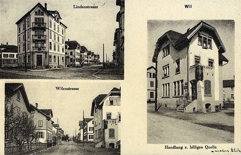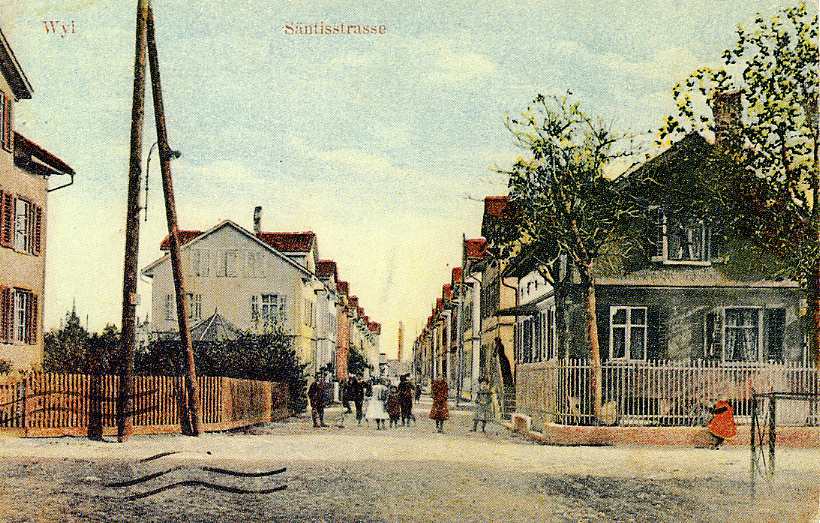 Die bauliche Entwicklung im 19. und 20. Jahrhundert Mit der Strassenkorrektion von 1834/35 öffnete sich Wil für eine Entwicklung ausserhalb der Altstadt. An den Ausfallachsen wie an der Bronschhofer-, der Zürcher-, der Fürstenland-, Konstanzer-, Wilen- und an der Toggenburgerstrasse entstanden kleine Gebäudegruppen Der vorherrschende Haustyp ist ein zweigeschossiges Satteldachhaus mit ausgebautem Stickereikeller und zweiachsigem Quergiebel. Sogenannte Stickerhäuser formierten sich an der Säntisstrasse zu einer homogenen Strassensiedlung. Erste Ansätze zu späteren Siedlungen waren öfters auch Gasthöfe (Schöntal, obere Bahnhofstrasse, Rössli, Toggenburgerstrasse).