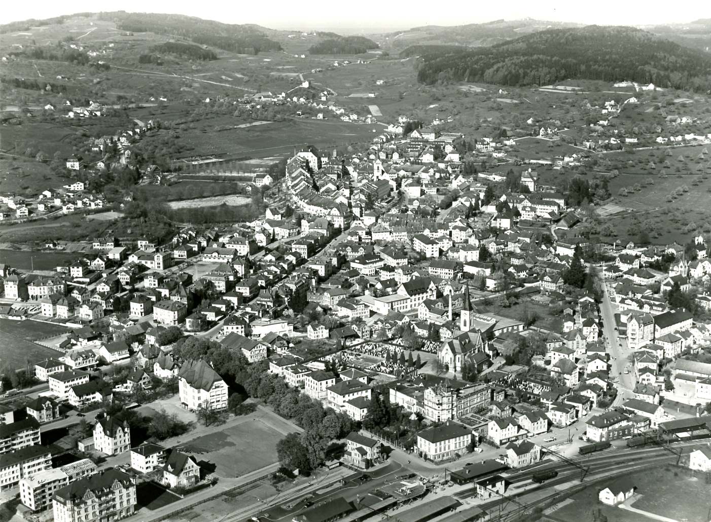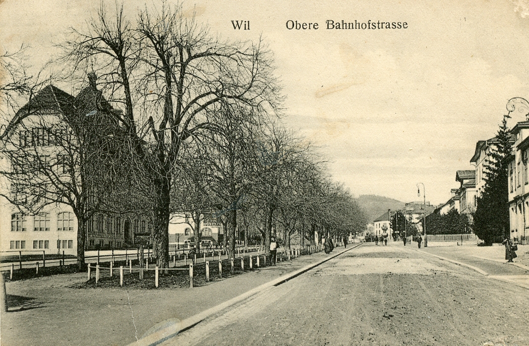 Mit der Einfahrt des ersten Eisenbahnzuges der Bahnlinie Winterthur - Wil - Rorschach am 14. Oktober 1855 war die Stadt Wil an das Bahnnetz angeschlossen. Die Verbindung vom Bahnhof zur Stadt, die Obere Bahnhofstrasse, entwickelte sich nach anfänglichem Zögern rasch und wurde zum eigentlichen Auslöser der Stadtentwicklung ausserhalb der Altstadt. Allerdings, das Stück vom Bahnhof zur Wirtschaft zum "Freihof", das sich ideal als Bauplatz anbot, wurde von ihrem Besitzer, der Ortsbürgergemeinde Wil, anders genutzt. In der Bürgerversammlung vom 16. Oktober 1860 wurde beschlossen, die damals in diesem Gebiet bestehende Kiesgrube aufzufüllen und einen Spazierweg, eben eine "Allee", zu erstellen, die als eine Art "Visitenkarte" von Wil für die Reisenden und als schattige "Wandelbahn" für die Einheimischen vor allem im Sommer ihre Funktion erfüllen sollte. Im November 1895 nun hatten sich die Alleebäume gut entwickelt, der kleine Platz in der Mitte aber war recht unansehlich geworden. In seinem Gutachten vom 3. November 1895 schlug der Ortsverwaltungsrat nun vor, neben den notwendigen Sanierungen auch einen Springbrunnnen mit entsprechendem Wasserbassin als Anziehungspunkt einzurichten. Der einstimmigen Annahme des Antrages folgte die Ausführung. Vom Besitzer der Villa Schlosshalde bei Pfungen konnte für Fr. 200.-- die eiserne Fontäne erworben werden, das Becken und das Geländer wurden selber erstellt.