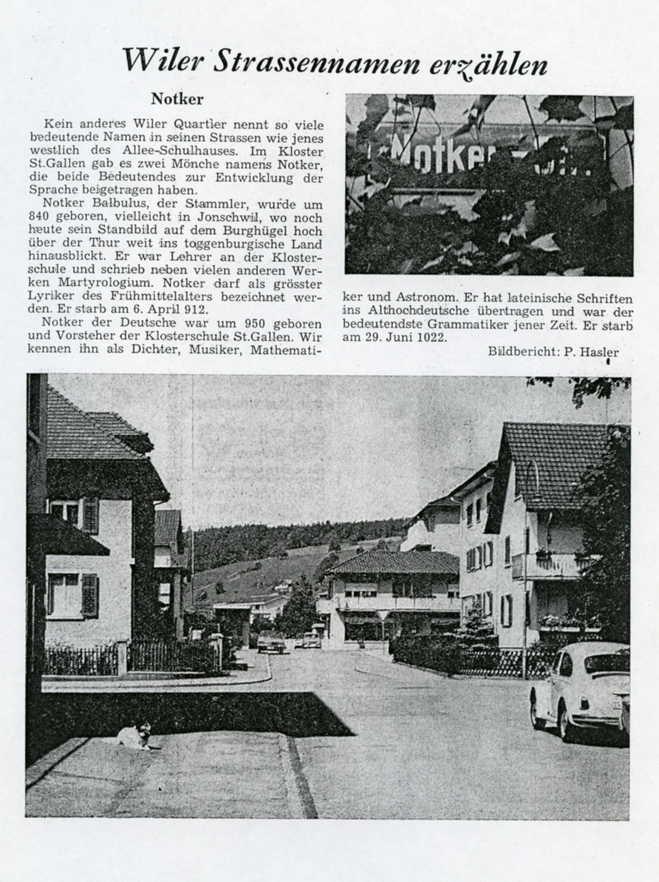 Kein anderes Wiler Quartier nennt so viele bedeutende Namen in seinen Strassen wie jenes westlich des Allee-Schulhauses. Im Kloster St.Gallen gab es zwei Mönche namens Notker, die beide Bedeutendes zur Entwicklung der Sprache beigetragen haben.