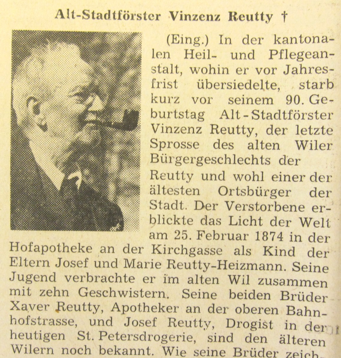 Vielen Wilern ist Stadtförster Vinzenz Reutti noch in guter Erinnerung. Er war der letzte Vertreter seines Geschlechts.