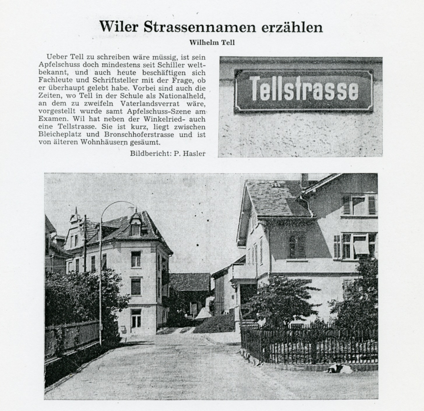 Wil hat neben der Winkelried- auch eine Tellstrasse. Sie ist kurz, liegt zwischen Bleicheplatz und Bronschhoferstrasse und ist von älteren Wohnhäusern gesäumt.