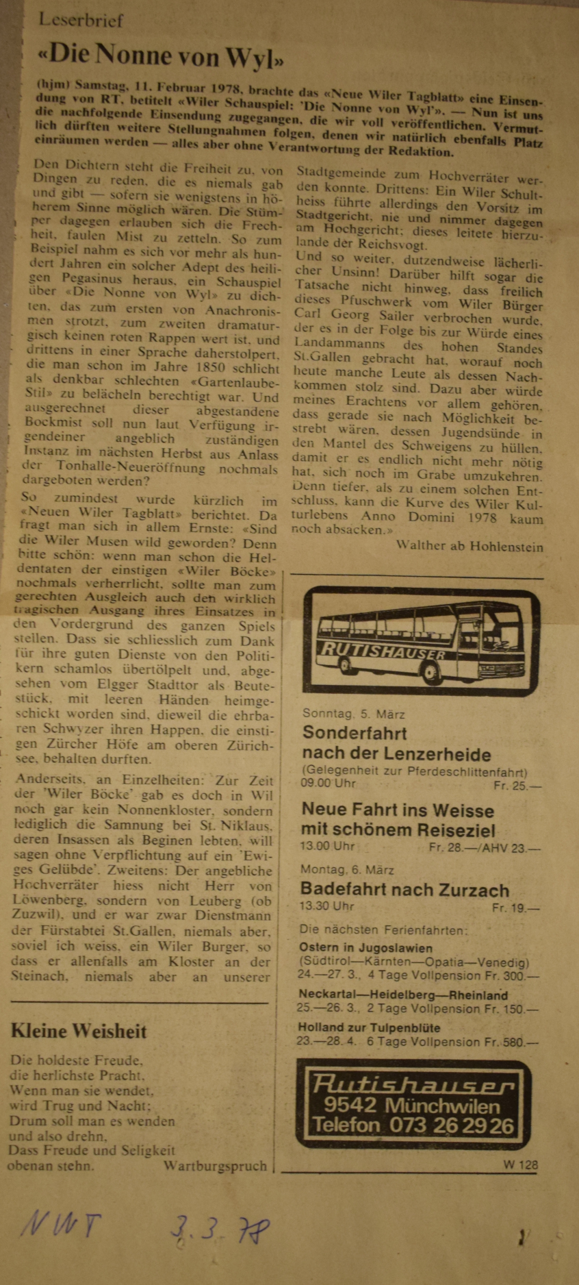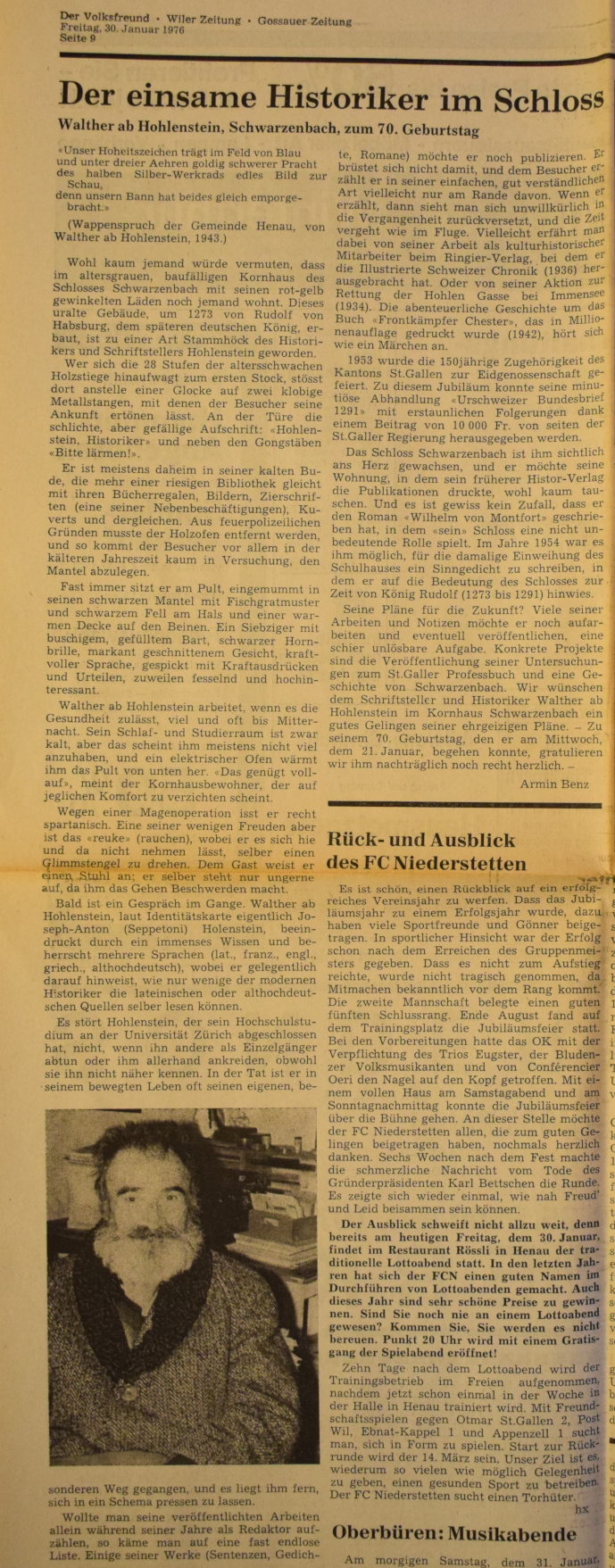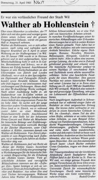 Am 8. April 1983 ist Walther ab Hohlenstein gestorben.