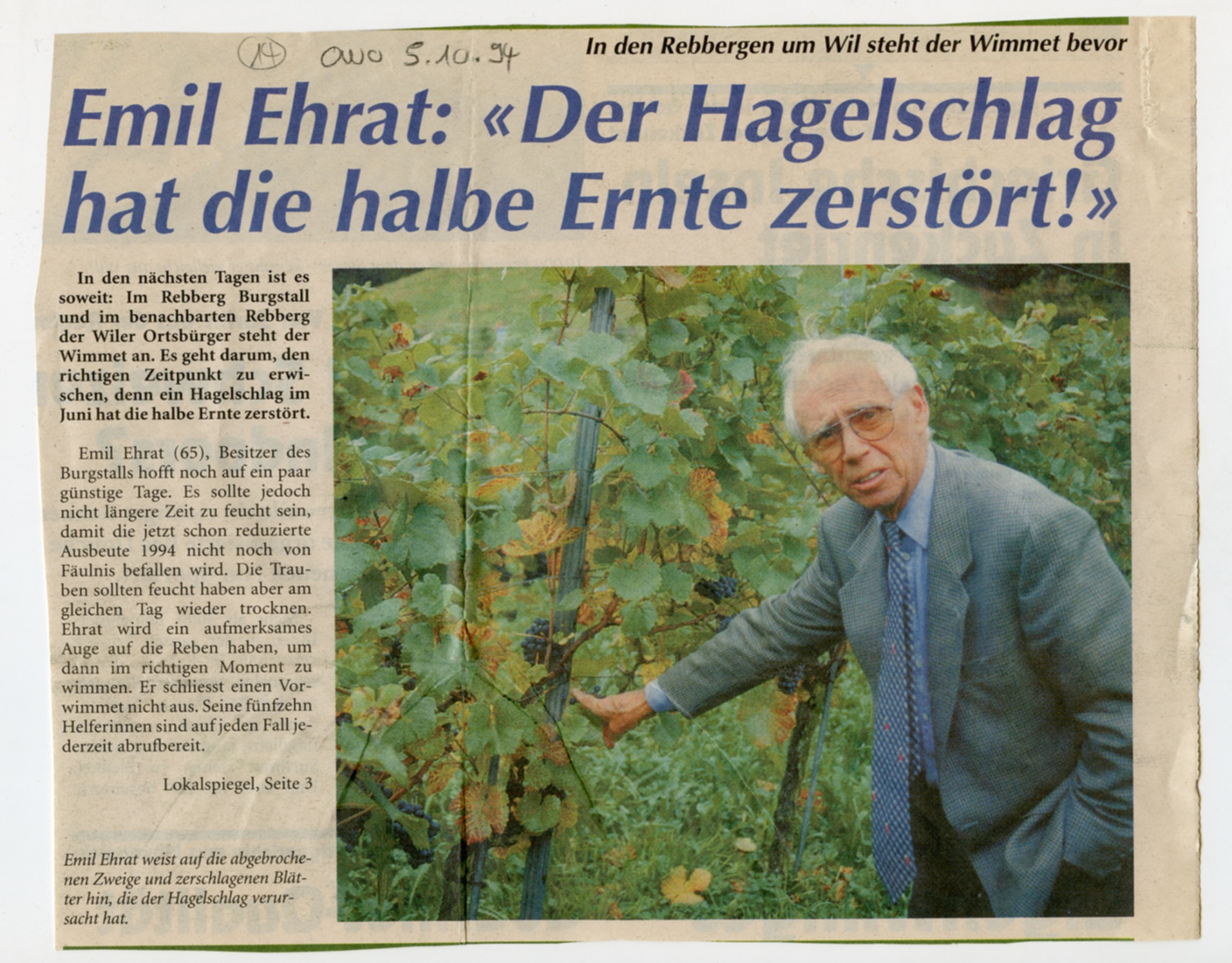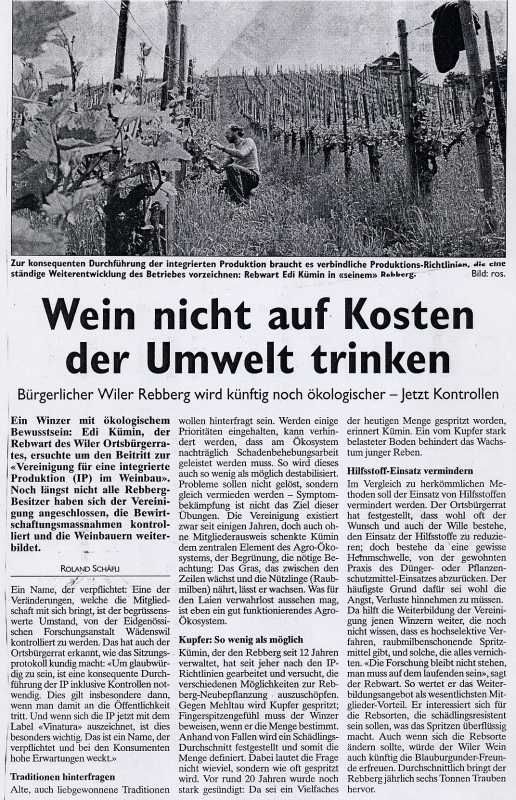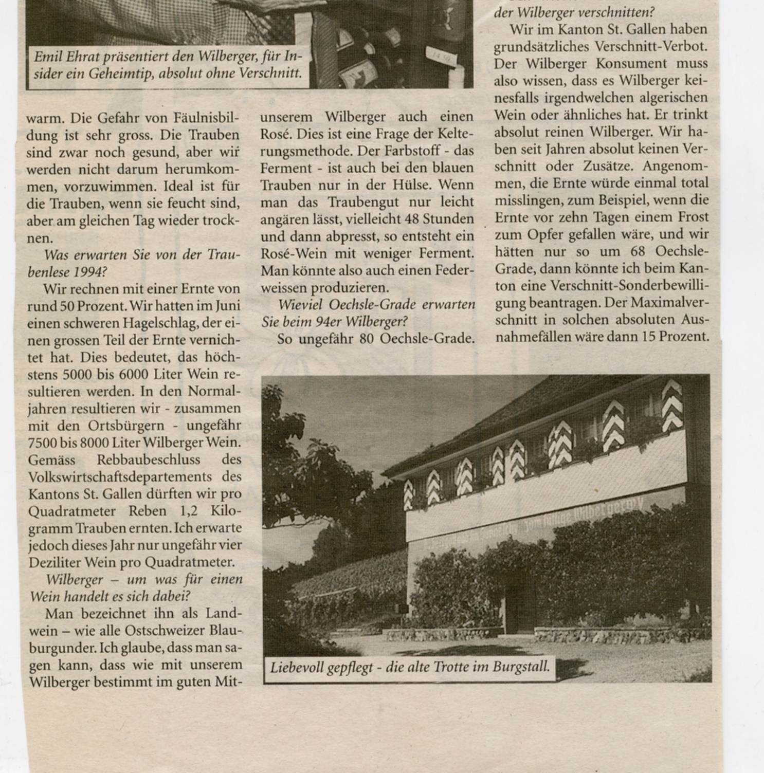 Blauburgunder 10'687 kg mit 99.85 Oechslegraden Regent 1'833 kg mit 92.3 Oechslegraden https://ortsgemeindewil.ch/oekologie/rebberg/