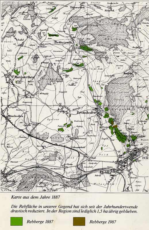 Seit Jahrhunderten wird in den Gemeinden Wil und Bronschhofen Wein angebaut. Im Laufe der letzten 150 Jahre nahm die Rebfläche auf Grund der zunehmenden Umwandlung von Rebland in Bauland, Rebkrankheiten (1906) sowie Frostschäden (1955) stetig ab.
