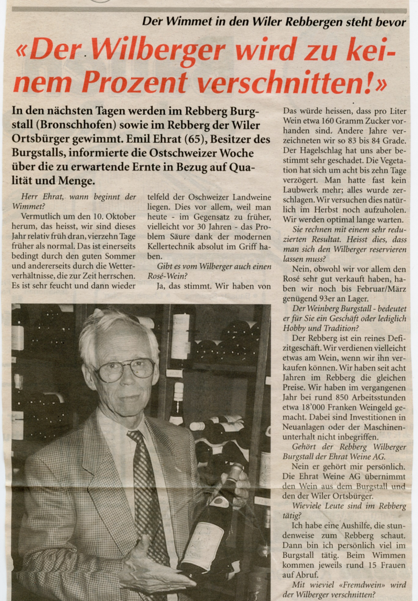In Wil wird der Blauburgunder mit Regent zum "Wiler Aebtetrunk" assembliert.