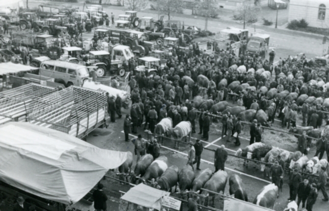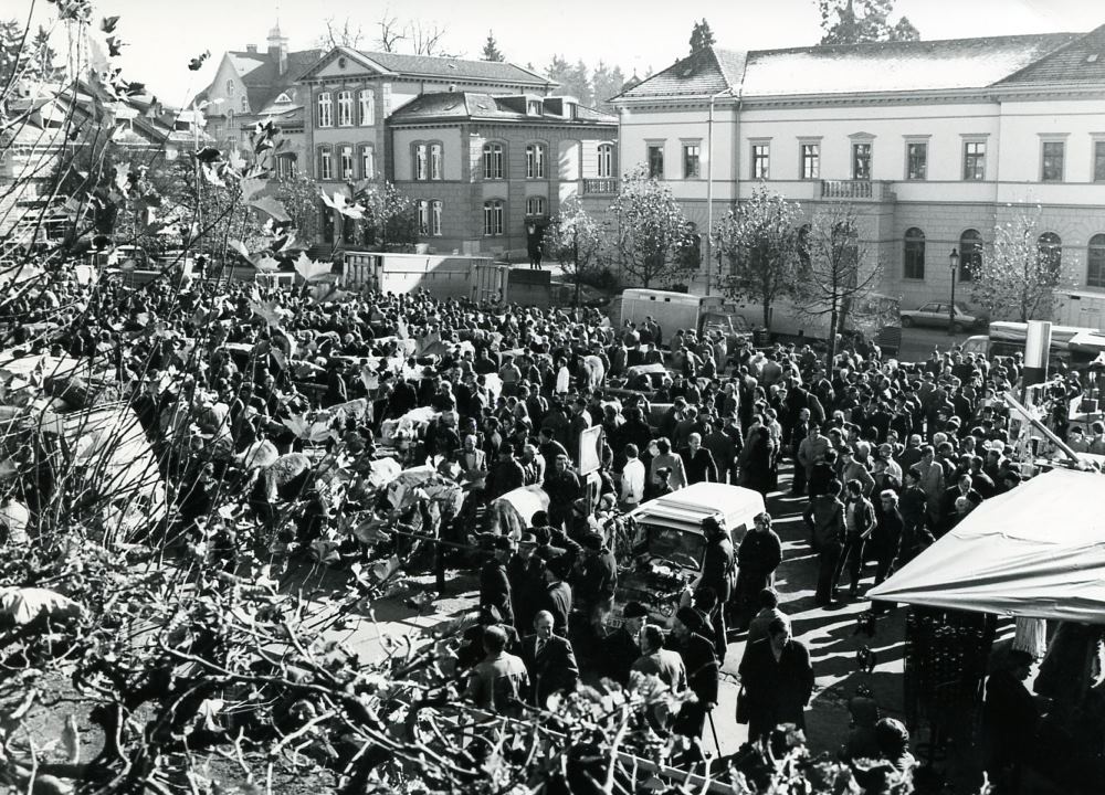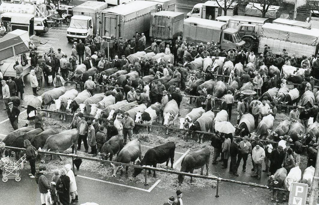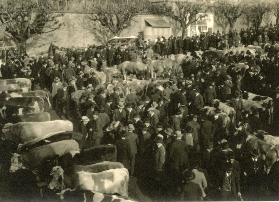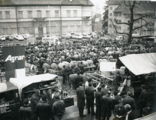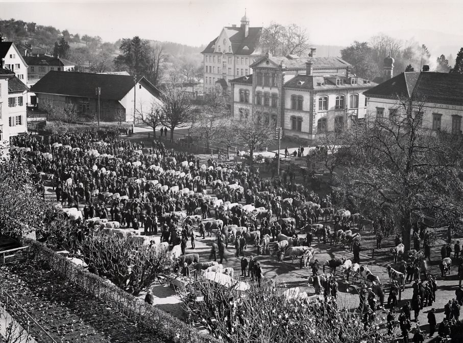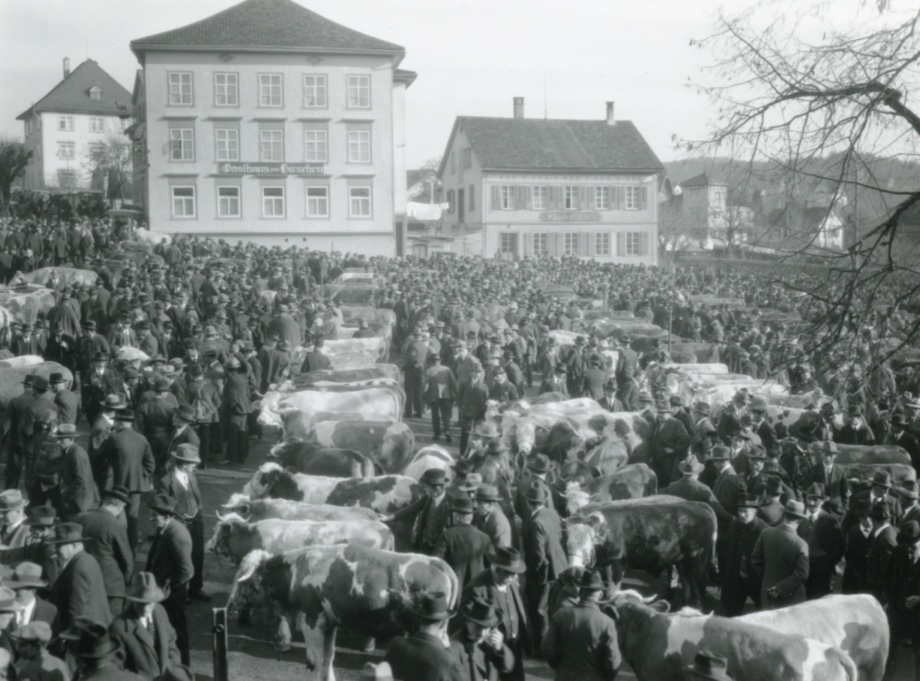 Vor der Oeffnung der Altstadt Wil anlässlich der Strassenkorrektion von 1833/34 wurden alle Märkte auf dem "Goldenen Boden" vor dem Hof abgehalten, auch der Viehmarkt. Erst danach wurde dieser auf dem "Viehmarktplatz" gegen die Tonhalle abgehalten. Während heute an den Jahrmärkten nur noch ganz wenig Vieh gehandelt wird, zeigen die Aufnahmen ab 1900 doch die frühere Bedeutung.