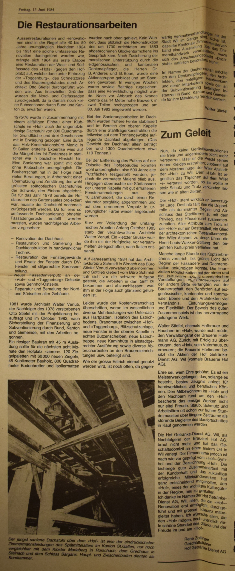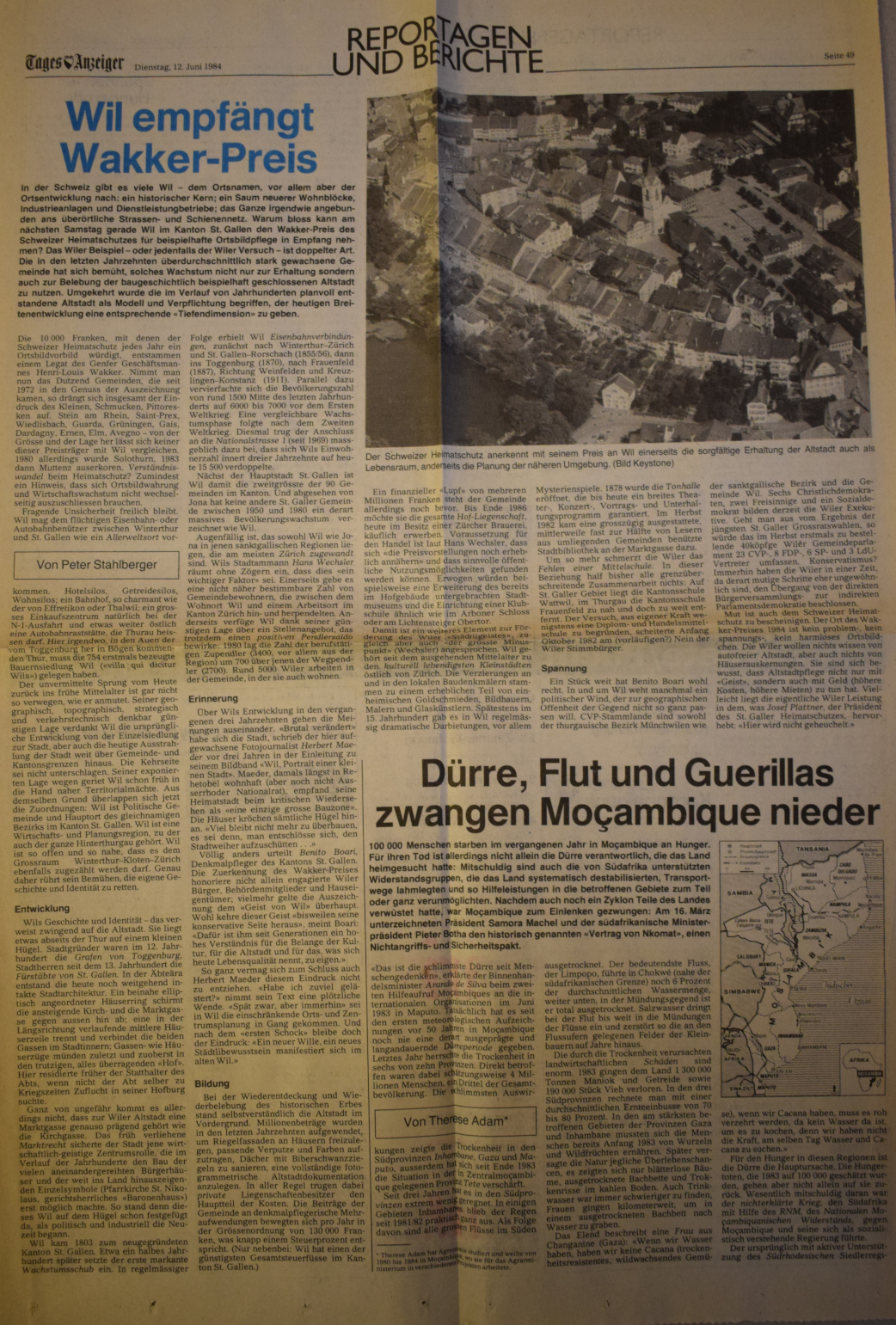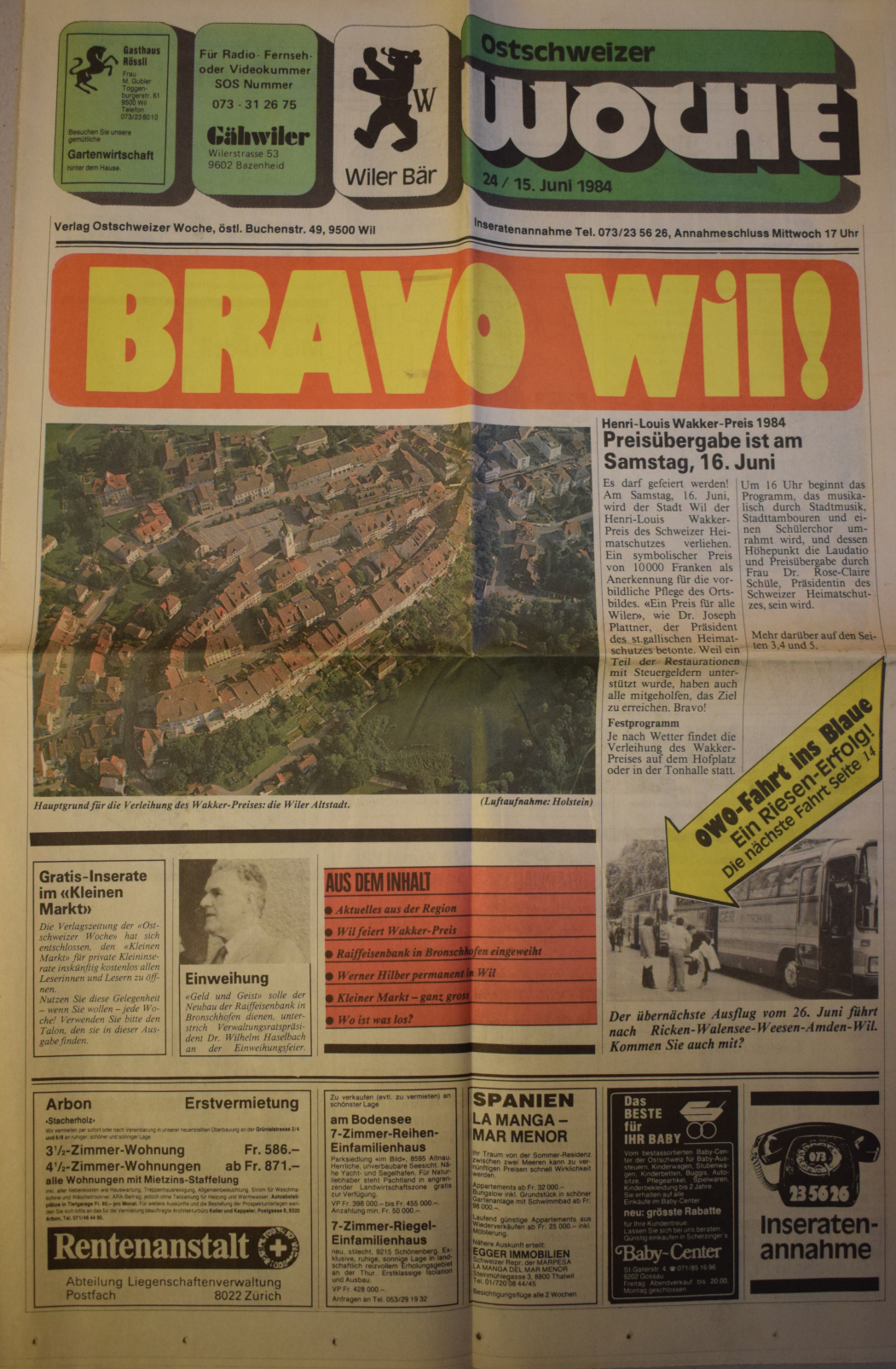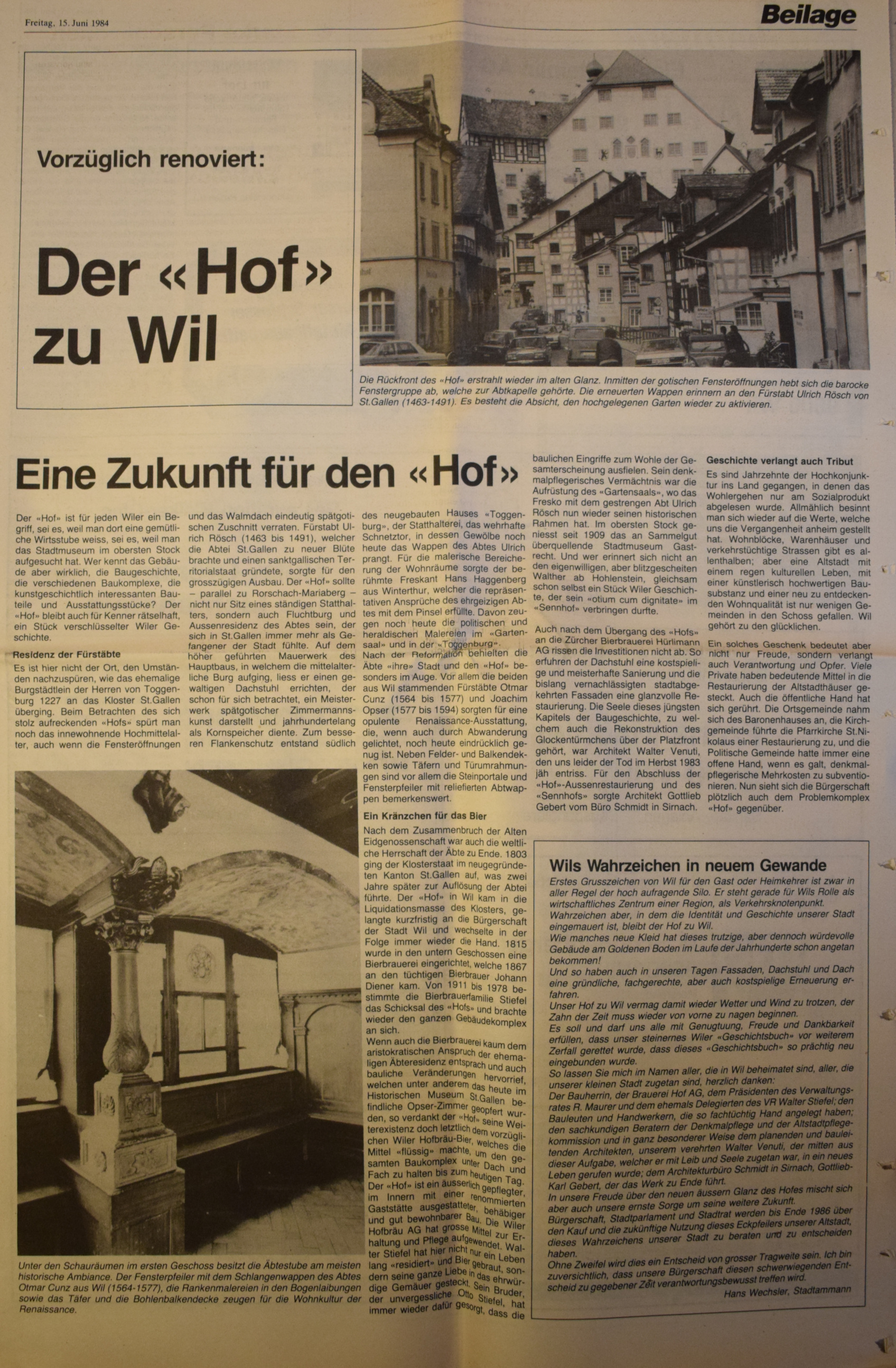 Am 16. Juni 1984 hat die Stadt Wil den Henri-Louis-Wakker-Preis des schweizer Heimatschutzes erhalten. Wil erhielt den Preis für "die sorgfältige, integrale bauliche Erhaltung der Altstadt und deren Aufwertung als Lebensraum, aber auch für die Zentrums- planung in der näheren Umgebung."