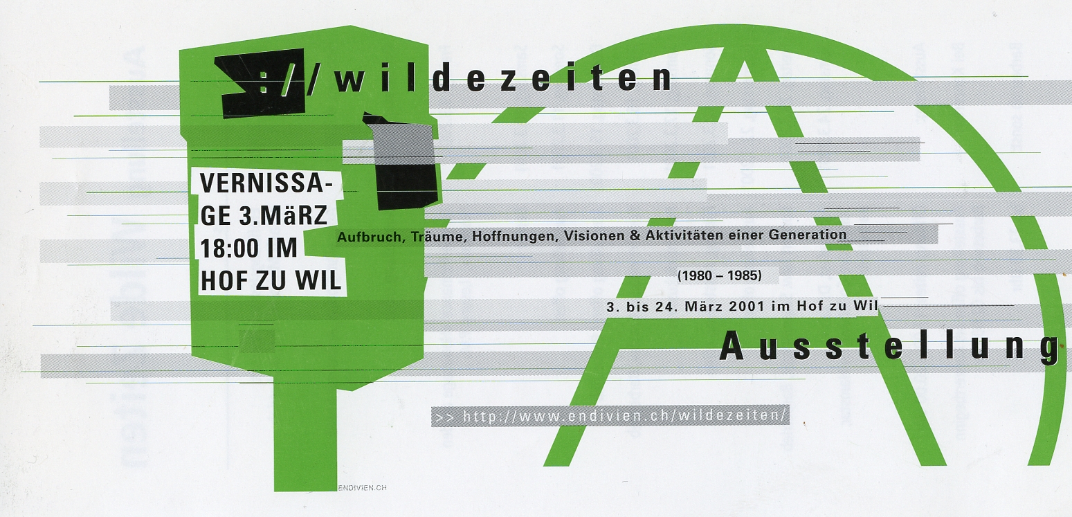 Vom 3. bis März 2001 fand im Hof im Gewölbekeller eine Ausstellung zu den "Wilden Zeiten" in Wil statt. Vier ehemalige Aktivisten, Franziska Peterli, Marcel Koch, Renato Müller und Werner Warth, der mitlerweile als Stadtarchivar von "Berufes" wegen auch die jüngste Vergangenheit pflegen darf, waren das Projektteam. Hier die Einleitung zur Ausstellung: