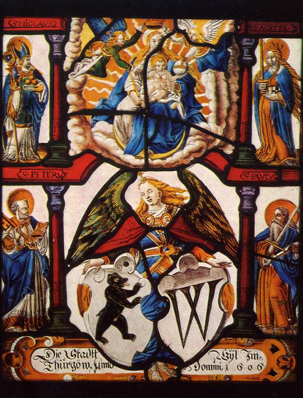 Seit dem Jahr 1226 war die Stadt Wil äbtisch, das heisst, der jeweilige Abt des Klosters St. Gallen war auch der Stadtherr in Wil. So verwundert es nicht, wenn der Bär, nämlich der Gallus-Bär, zum Wiler Stadtwappen wurde - und es bis heute noch ist. Schon im 15. Jahrhundert finden wir ihn auf Siegeln, auf Wappenscheiben aus dem 17. Jahrhundert ist er in Kombination mit dem grossen "W" für Wil vorhanden.