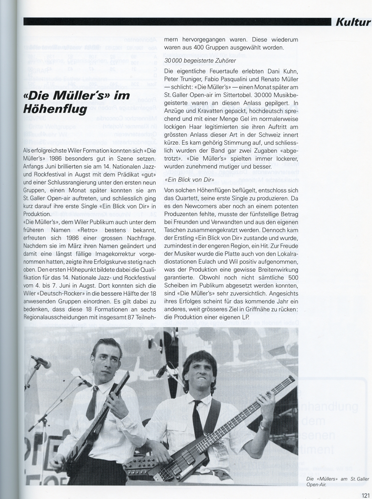 Zukunft Ihr erstes Konzert gab die neue Formation "Müller" am 12. April in der Remise, Wil. Es war ein Grosserfolg. Trotzdem halten sich die "Müllers" seither etwas mit Konzerten zurück. Sie arbeiten vorwiegend im Studio und bereiten eine neue Produktion vor. Die CD wird im Frühjahr 1992 auf den Markt kommen.
