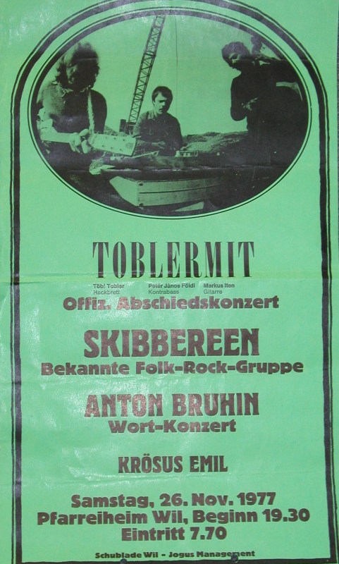 Besetzung Töbi Tobler (Hackbrett, Voc), Markus Iten (Git, Voc) Peter Földi (Kontrabass, Git, Voc) von - bis 1976 - 1978 Werdegang + Stil Folktrio um den Hackbrettspieler Töbi Tobler. Spezielle Interpretationen z. b. von Pink Floyd sowie Rock'n Roll, Ländler und eigene Mundart-Lieder. Bestritten viele Aufritte in der ganzen Schweiz. Standen auch als Strassenmusiker auf der Gasse.