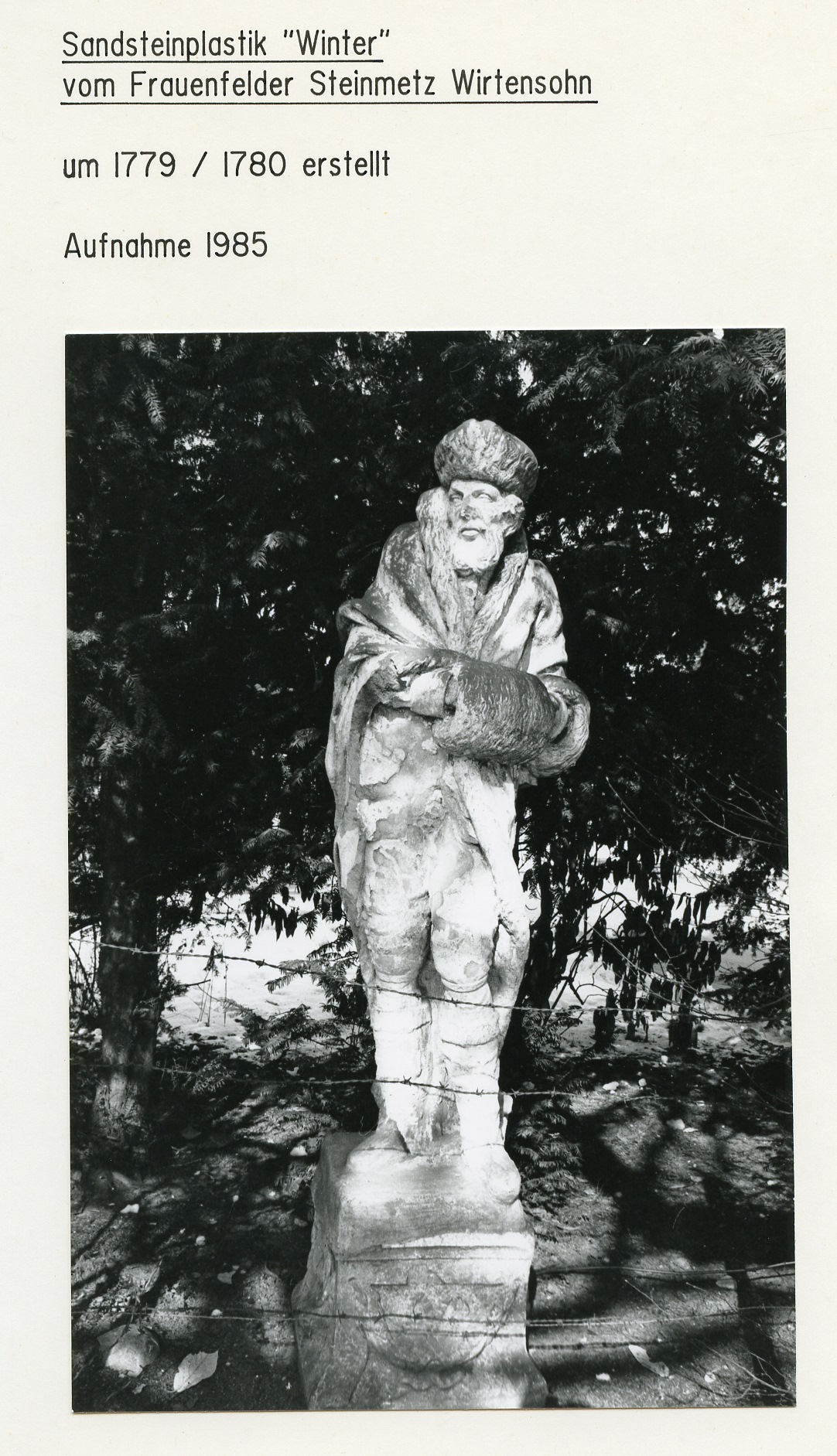 Er war u.a. auch in Wil tätig: u.a. war er der Ersteller der alten Pancratiusstatue, die auf dem Pancratiustor stand und ab 1840 auf dem Stadtbrunnen. "1779 wurde er beauftragt, vier allegorische Figuren der vier Jahreszeiten in Stein auf die Hauptbrunnen zu liefern. Ob aber diese grossen Statuen der Absicht entsprechend Verwendung fanden, ist sehr fraglich. Sie standen um die Mitte des 19. Jahrhunderts auf der Terrasse beim Hof und kamen später in den Kunsthandel. Nur noch der kaltanmutende Wintersmann ist im kleinen Park beim Bahnübergang an der Hubstrasse erhalten geblieben", so schrieb Karl Ehrat in seiner "Chronik von Wil" von 1958. Die Figur wurde im Laufe der Zeit schadhaft. Ab 1983 wurde eine Restauration ins Auge gefasst. Weil aber die Figur in einem so schlechten Zustand war, wurde davon Abstand genommen. Die Figur blieb im Werkhof, wo sie dann entsorgt wurde. siehe dazu auch "Winter", Plastik.